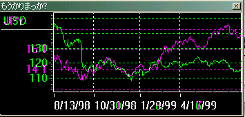 ![]() 緑 : 円vsUS$為替 紫 : 日経平均株価: |