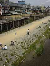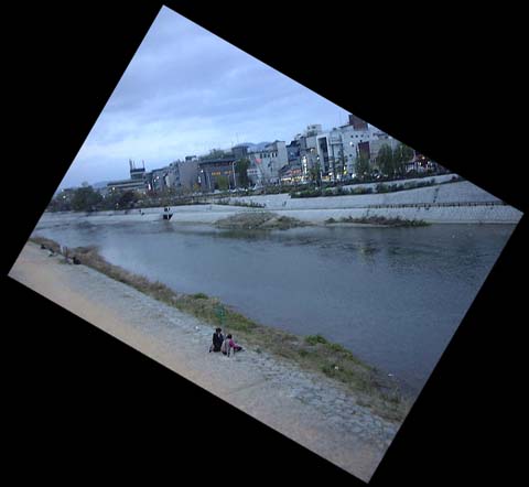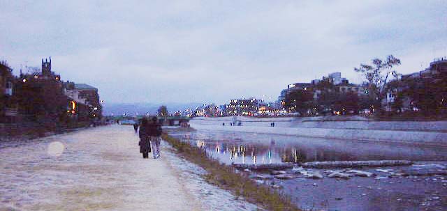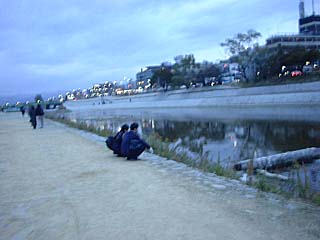 ![]() | 鴨川の川縁を真上から見た所。画面上部が鴨川。画面下部が歩道。画面中央に街灯がある。そのため、画面中央が一番明るい。 |