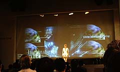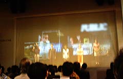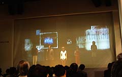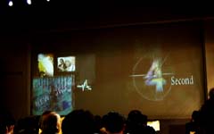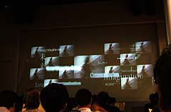 ![]() プレゼンが終わり、スクリーンが下る。そして、キーワードが前後に映し出される。  |