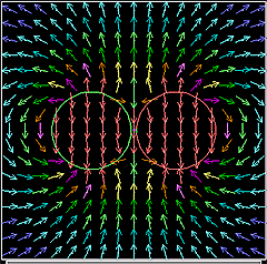 下に示す図はドーナツ型の磁石の周りの磁界をCUPSを用いてシミュレーション計算した結果である。この計算結果と同じようなものが「マグネビュアー」を使うと簡単に可視化できる。