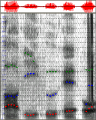 見た目には、完全に別物の波形に見えてしまう。しかし、フォルマント上は「元気な私」と「扁桃腺が腫れている私」でほぼ同じ(F1-F2空間における私の「アイウエオ」を参照)であることを考えると、