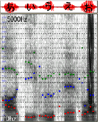 面白いことに、前回標準的な分布から外れていた私の「ア、オ」が今回は標準分布の中に収まっている。ガラガラ声になることで、私はやっと標準的な「アイウエオ」になるようである。何故だか、よくわからないが、面白い。まぁ、きっとフォルマント判断の際のピーク検出精度の問題だとは思うのであるが、不思議な結果である。