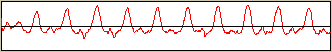それに対して、扁桃腺が腫れている私の「あ」はスパイクノイズの入っている波形になってしまっている。こちらもスパイクノイズの入り方は割に同じ繰り返しである。