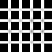 この有名な画像パターンを見れば、「白い線の交差部が赤く見える」はずだ。