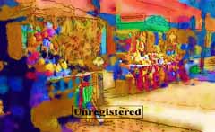 こうして、紙の漉き目に沿った水彩絵の具のにじみも処理すると下のような画像が出来上がる。「できるかな?」の色鉛筆風のメキシコのティファナの風景である。