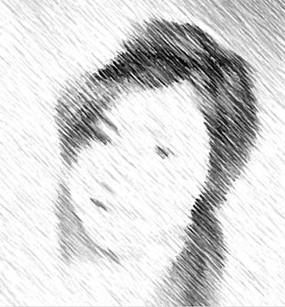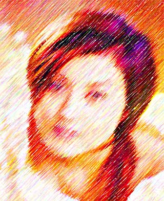 この色鉛筆風の処理のコツは点描で分解して、ストローク(斜め)+アンシャープマスクで長めの鮮やかな線にすることである。