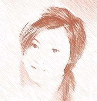 すると、こんな感じで「できるかな?」の色鉛筆風の藤原紀香のできあがりである。Photoshop付属のフィルタだけで処理している割には、なかなか良い感じのできに思えるのだが、それは単に藤原紀香の色香に惑わされているだけかもしれない。