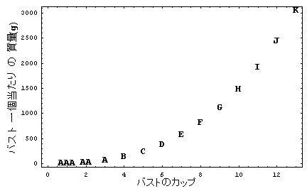 例えば、先の「時速60kmでは全然オッパイの感触ではなくて、ちょうど時速100kmを境に急にオッパイの感触を感じます。」というメールの書き主の思うオッパイのサイズは何とFカップである、ということが判るわけだ。実際のところ、何が標準かどうかは判らないが、Fカップというのはかなりな巨乳に思えることであるし、このメールの書き手はとてもオッパイ星人度が高い、ということになる。