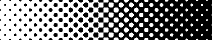 そもそも、ハーフトーニングとは多値階調を持つ画像などをニ値出力の(もしくは少ない階調しか持たない)機器で出力するために、多値の階調をニ値(もしくは少ない階調)の面積比率で置き換えることにより出力する方法のことである。例えば、下の例はグレイスケールのグラデーションパターンを円スクリーンによりハーフトーニングしたものである。