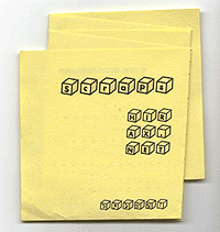 両端を動かすだけで、パタパタと自然に開いたり折り畳まれていくようすがよく判ると思う。![]() | 実際の大きさは掌にすっぽり隠れるサイズ。 裏表紙は表紙を裏返したデザイン。それは、考えたり思ったりしたことにはきっと表も裏もあるだろう、という気持ちの現れなのである。 |
