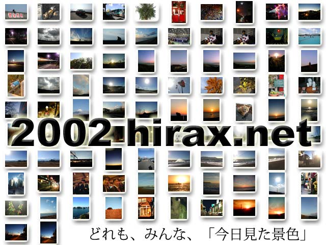 さて、2002年もまた「今日見た景色」に向けて私はシャッターを押し続けると思います。そのファインダーの中に見るだろう「明日見る景色」も、やっぱりその日その日の「今日見た景色」です。2002年の明日見る「今日見た景色」はどんな景色なのでしょうか?ずっと夢見てきたような景色が、そこには見えるのでしょうか。それとも、想像したこともないような景色を私は眺めているのでしょうか。