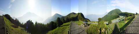 以前、「箱根の湖尻から眺めた早朝の世界」をパノラマ写真にしたことがあったが、試しにこのパノラマの景色を映し出す小さな水晶玉を作ってみよう。