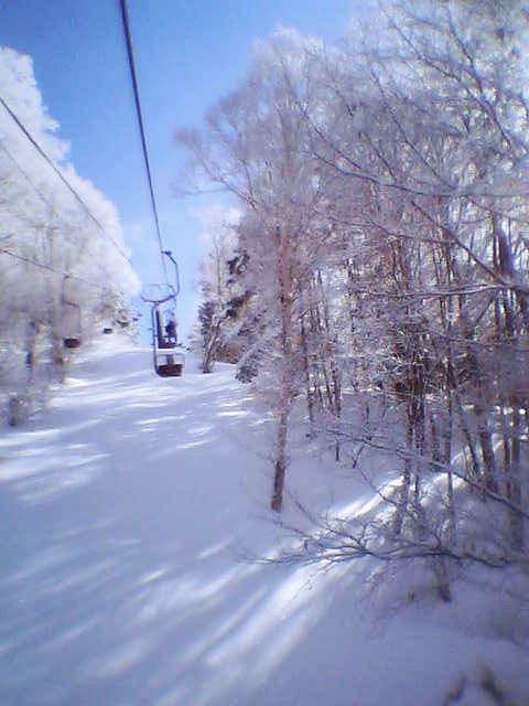 朝一は極上のパウダースノー。雪が膝まであることも全然判らないくらい本当に軽い。2本目以降のゲレンデ下部では雪の重さを感じるようになって、三本目以降ではもっと重くなったけれど、とにかく嬉しくなるくらい気持ちの良い雪だった。