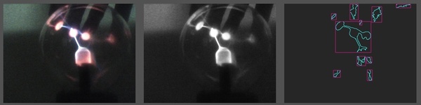 秋葉原でプラズマボール(ガラス球に触れると内部のプラズマが美しく輝く玩具)を980円で買い、100円ショップで税込み100円以下で買ったUSB 3D カメラを使って、半球面マルチタッチインターフェースを作ってみました…というか作り始めました。…半球形状に触ることができるというのは、つまりいわゆるひとつの「おっぱいに対する複数指を使った接触状況をセンシングするユーザーインターフェース」です。単純に言うと、球状のプラズマボールに指で触れたことによるプラズマ光をUSBカメラで検出し、その接触状況をセンシングして、半球形状の物体を複数の指でそのように触れているかをリアルタイムに検出しよう!という仕組みです。