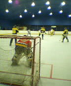 西千住アメージングスクエアーでインラインホッケーの試合。この写真は(私たちの)試合の合間に眺めていた、何処かのチームの試合のようす。とりあえず、一勝一敗。