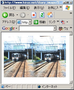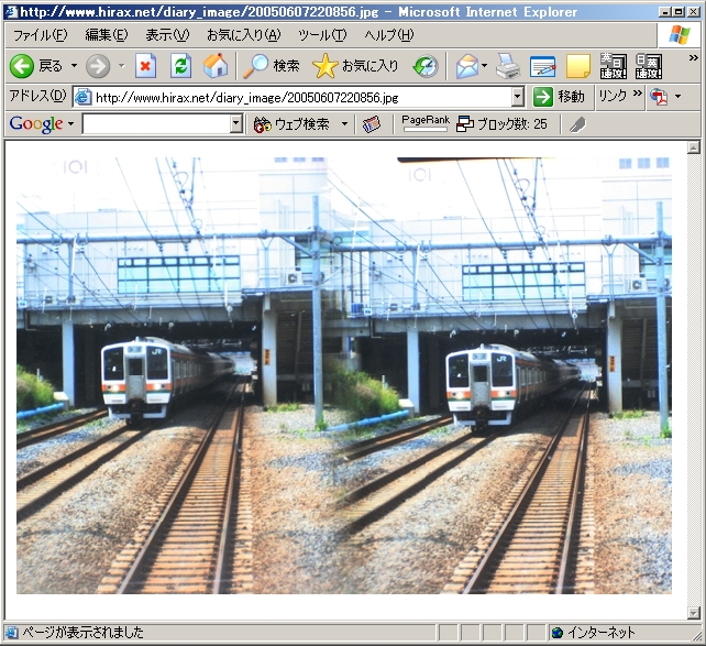 「立体写真の画像が大きすぎて、「左右の画像距離」が「自分の左右の目の間隔」より長すぎて、平行法でなんか眺められないよう〜」という言葉を頂いています。そんな場合は、ブラウザの機能を使って画像の大きさを調節して頂けますでしょうか。例えばインターネット・エクスプローラなら、ウィンドーの大きさを変えれば画像サイズが調整されることでしょう。また、他のブラウザーでも(もしくは何らかのプラグイン機能を用いれば)きっとそんなことができるだろう、と思います。