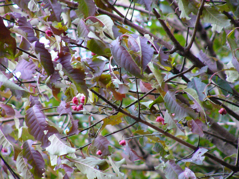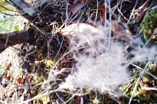 で、気づくと足柄IC近くの林の中。そこで上を眺めると、眺めた赤い木の実顔をところどころで顔をほんの少しづつ出している。周りは人気がなさそな別荘ばかりだけど、ところどころ湯気が上がっている家もある。きっと、仙人のように暮らしている人もいるんだろう。