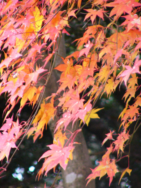 冬と秋の間の暖かい日。葉の向こうに見える青い空は、きっと何千年もの前の今日と同じ色の空。