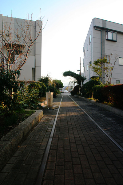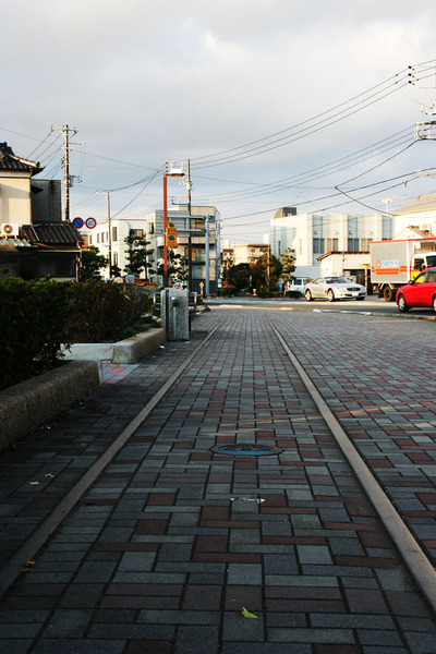 これは一体なんだろう?と思い調べてみると、その物体は本当に鉄道の「レイル」だった。昭和49年まで使われていたという旧国鉄の蛇松線が、こうして沼津駅から沼津港までの街の中に残っていたのだった。街の中に廃線が残っていて、人がその廃線上を、気づかぬうちに歩いていたりする風景は、映画を写すカメラの中の景色のようで、少し幻想的で綺麗だ。