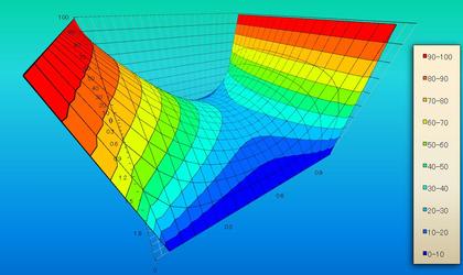で変更する、という手順でも構いません。どちらの手順でも構いませんが、これで自然な虹色の縦軸(値軸)が0~100の等高線鳥瞰図を作ることができるようになります。