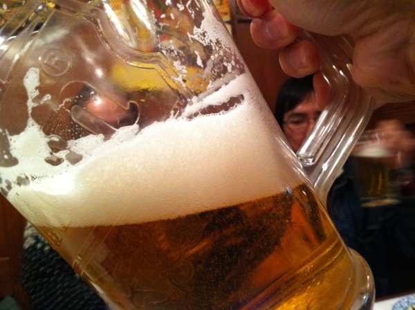 年も暮れ、忘年会のシーズンになりました。白い泡をかぶったビールがタップリ入ったピッチャーを持ち、ビールをジョッキに注ごうとピッチャーをグイッと傾けると、ピッチャー上部の泡ばかりがジョッキに注がれてしまいました。ピッチャーの上の方は泡だらけだからしょうがないか…と諦めていると、横からぐいっと手が伸び、ピッチャーを掴みました。