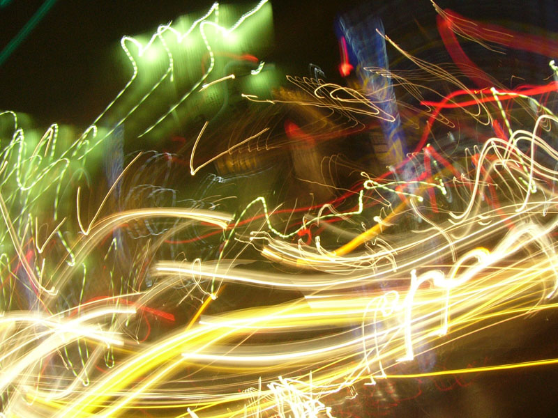 そして、二枚目はひたすらカメラをシェイクし、駆け抜けていく世界をオシロスコープのように記録してみた。早いものはまっすぐに、遅いモノは揺れ動かしてみたのだ。というわけで、揺れ動く今日見た夜の世界です。