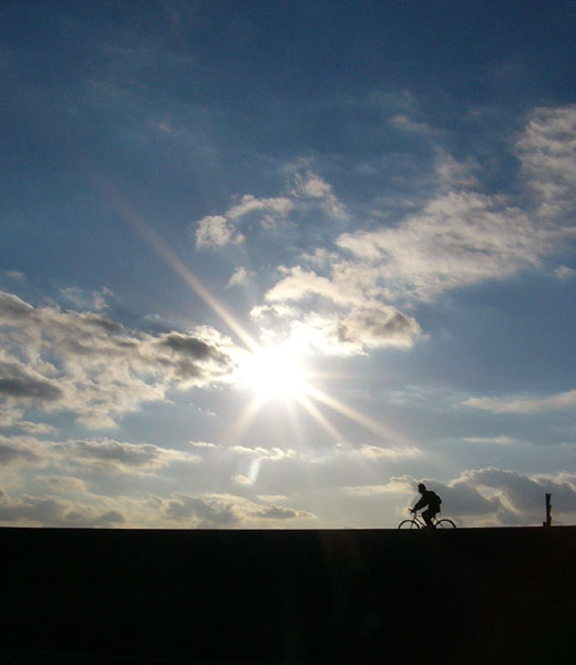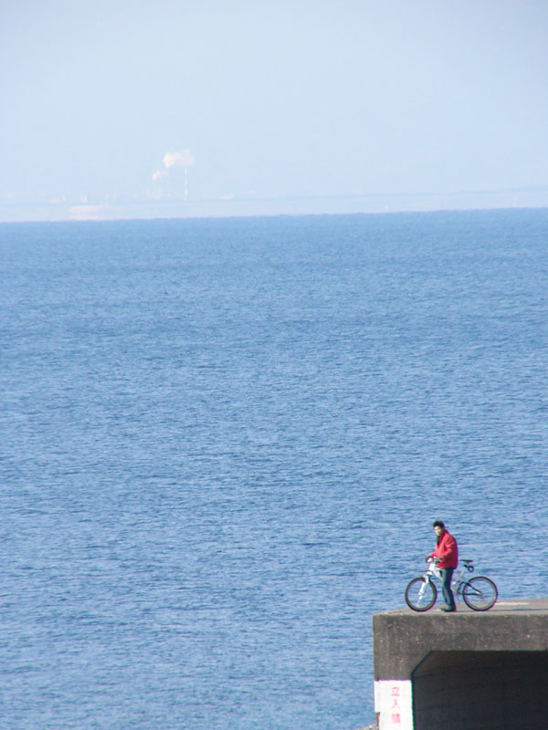 さてさて、そんな景色に向かって自転車に乗っている人も遠くにいます。海の向こうには蜃気楼だって見えるのでした。このままここをずっと散歩していたい気持ちになります。