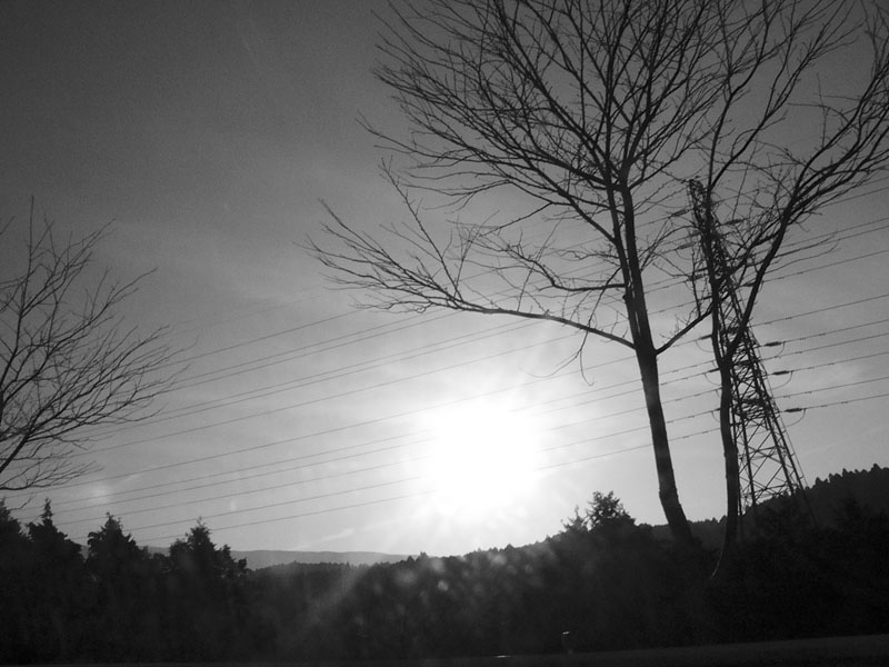 会社の辺りは雪は積もっていませんでしたが、あともう少し`50mも標高が上がれば雪が積もっているような感じ。こんな景色も何処か遠くの景色に見える。遠くの雪景色の中を結ぶ送電線がとても不思議な感じに見える。