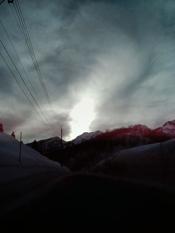 温泉はやはり乳白色が気持ちいい、ということで燕温泉へ。道が途絶えたと思ったら、そこはもう小さなスキー場のリフト乗り場の横。そこ車を停めて、後はスノーモビル。