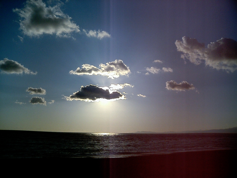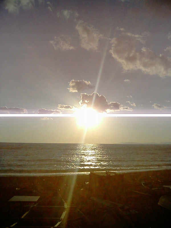 カメラ付き携帯電話で写真を撮ることが多い。あるいは、デジタルカメラを使うにせよ、小さくて安いものを使うことが多い。そして、普段の生活がら、昼の南の海や夕方の西の海の景色を撮影することが多い。すると、カメラ付き携帯電話や安いデジタルカメラでは「スミア」が派手に出てしまう。青い海の上の、青い空に輝く太陽の景色が、途端に陳腐な景色に変わってしまう。