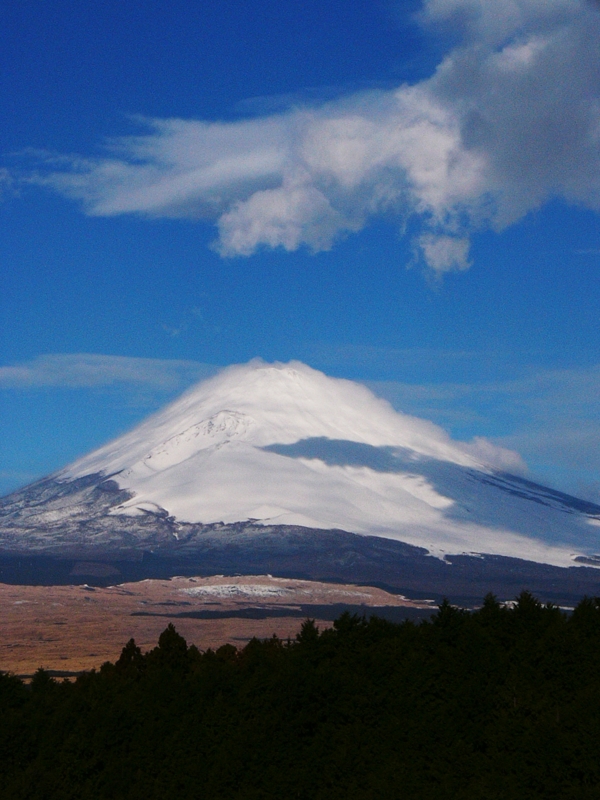 朝の職場近くで眺めた富士山。朝は富士が綺麗に見えることが多い。富士の裾野の向かって左手には、小さなスキー場が見える。