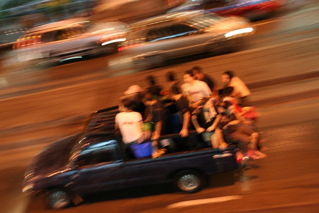 紅天女が出てきそうな風景だ。と、一瞬思うが「ガラスの仮面」の紅天女は梅の木だったことにしばらくして気づく。ほとんど全ての人が、デジタルカメラかカメラ付き携帯電話で夜桜を撮っている。携帯電話を両手で携えて桜に向かっている人たちは、まるで何かのお祈りをしているかのよう。