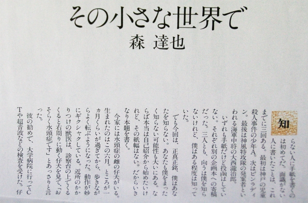 それぞれ「彼女」の心を読み解こうと試み、やがて「自分」の位置に思いを馳せる。あるものは倒れ、あるものは絶望し、あるものは迷い続ける。その途上に、彼女の残した「きっと」という言葉。それは運命、その意味へと向き合う人の希望であり、なによりも祈りなのである。などと似たようなものになるかもしれない。けれど、遥か年上の男性という視点から描かれた物語と、そうでない物語という違いが(いつもそうであるように)ある。