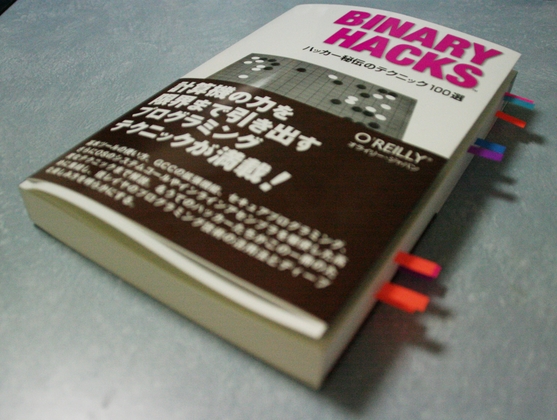 「BINARY HACKS ハッカー秘伝のテクニック100選」を読んだ。名うてのハッカーたちが解説する「ハッカー秘伝のテクニック」を読むなんて猫に小判…としか思えなかった。しかし、読んでみると「あぁ、そういえばこんなことに頭を使ったこともあったっけ…」と振り返りつつ付箋紙を貼り付けたページも多く、意外なことにとても面白く楽しめた。何だか読んでいるうちに、どうして動いているのかもよくわからないコンピュータ・プログラムの世界が、保育園や幼稚園の床の上に積み重ねられた原色の「積み木おもちゃ」みたいに思える一瞬がある。そんなカラフルで単純な積み木を手につかんで、ふと遊んでみたくなる。