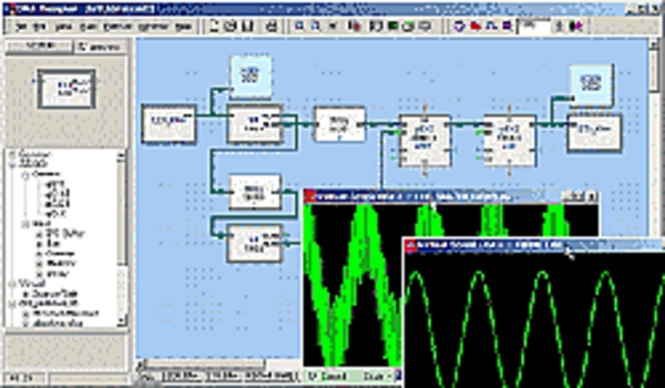このDAPDNAの統合開発環境には2種類ある。一つは、C言語のような「高級言語」を使う DFC Compiler で、もう一つが演算器をドラッグ・アンド・ドロップで繫げるGUI 形式の開発環境 DNA Designer だ。