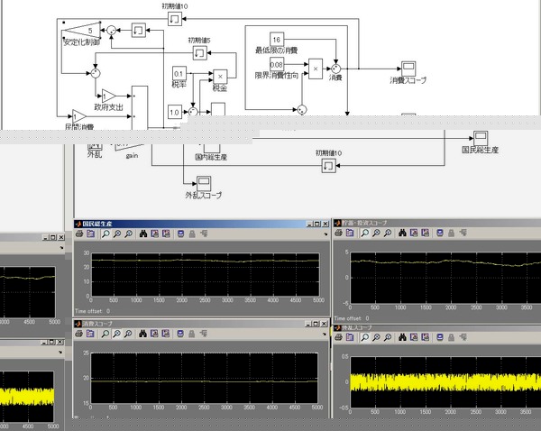 「Simulinkで経済循環モデルを作ってみる」「続:Simulinkで経済循環モデルを作ってみる」というように、教科書を読みながらマクロ経済学のイロハを学ぼうとしています。