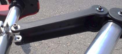 少なくとも、今回比べた純正A-bikeは「剛性」「直進性」において、パッチモンに比べてかなり劣っていた。前輪・後輪の直進性、そしてフレームから後輪への剛性感が、全然違うのである。それは、単に個体差かもしれない。しかし、細かな部分の設計が違うことにも原因があるように見えた。それは、たとえば、6インチと8インチというタイヤ径の違い、あるいは、キャンバー角の設計の違いである。そしてまた、同じ寸法・作りのようで、実は結構違う各パーツの剛性・設計の違いである。