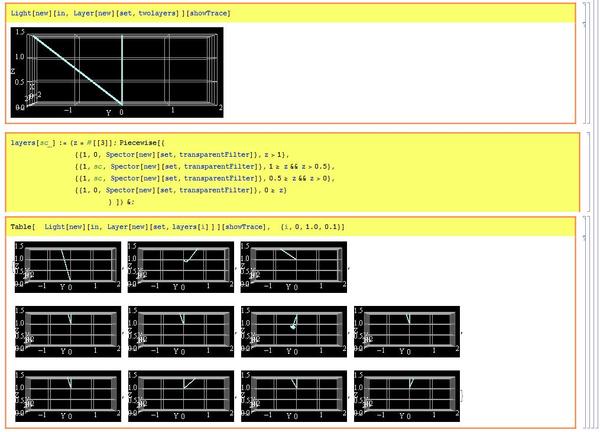 というようなコードになります。labPlotという名前の関数が一番外側にいて、その内側にMap関数がいて、さらにその引数のひとつにTable関数がいて、その内側にtransmissionSpectorがいて・・・、という風に関数・括弧で外側から包まれているような具合の書き方になります。