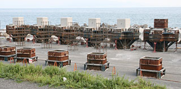 もしかしたら、私以外にもこんな「巨大テトラポッド」に見とれる人がいるかもしれないので、テトラポッドの「骨」や、立体十字型テトラポッドの生産工場の写真を下に貼り付けておきます。なんだか、立体十字型テトラポッドが、太平洋に浮かぶイースター島で、水平線の彼方を眺めるモアイ像のように見えてくるのは私だけでしょうか?