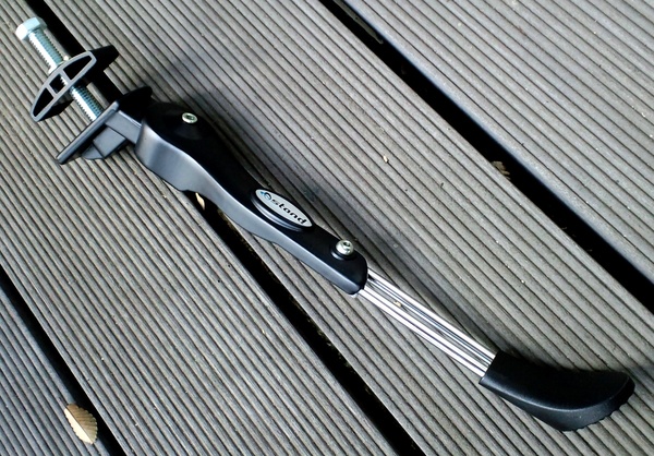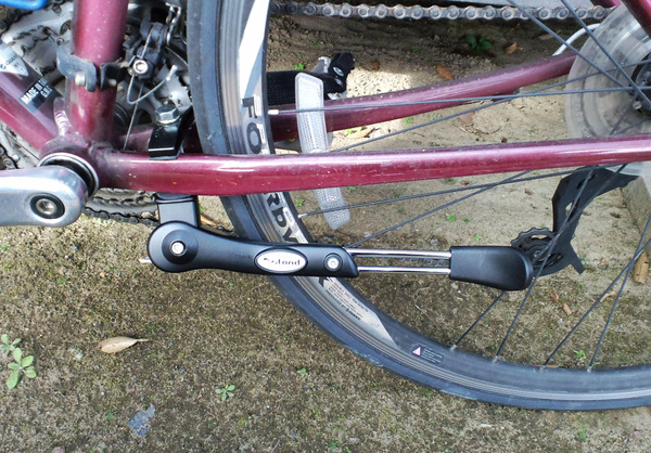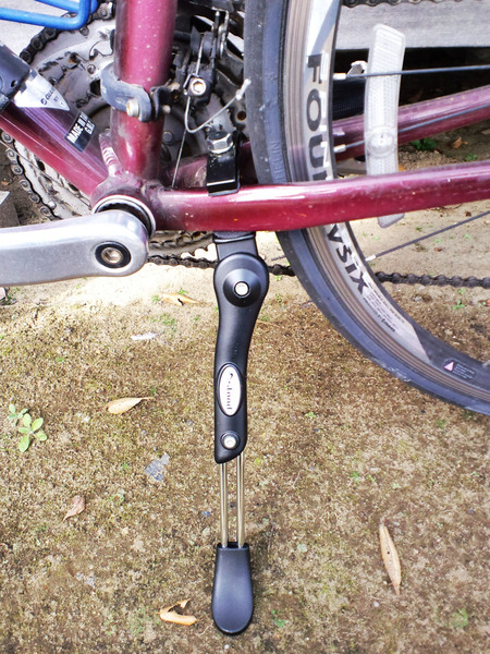 毎日使う自転車にスタンドが付いていないと・・・ちょっと不便、というわけで、センタースタンド Tranz X(JD CD-109A)を買い、GIANT Escape R3に取り付けました。千円ちょっとでセンタースタンドを買い、100円ショップで買った振動吸収ゴムパッドをスタンドに貼付けた上で、フロントディレーラーのワイヤーと干渉しないように、中央少し後ろにギシギシと固定してみました。