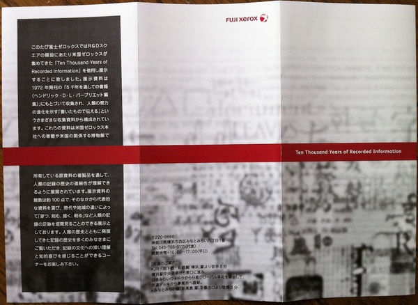 あるいは、そのビルの3階に行くと、"Ten Thousand Years of Recorded Information"と題された資料を展示するスペースがあります。二万年近くにわたる人類の記録の歴史、古代の洞窟の中の手形から銀河の向こうの恒星に向けて放たれたメッセージまで、人類が記してきた12の貴重なメッセージを眺めることができるのです。