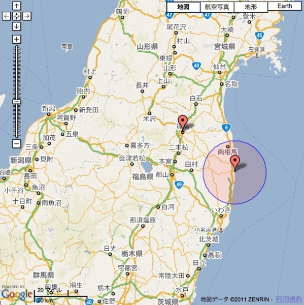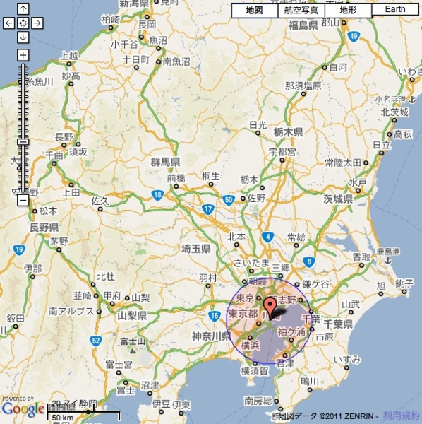 「○×△から20kmの地域」とか「○×△から30kmの地域」という言葉を聞きます。普段、距離を意識しない生活をしていたりする…とか、「距離」で言われても「面積」としては実感できない、ということもありそうです。そこで、「○×△から30km」の広さを実感してみようと考えて、GoogleMapsで距離円を描くツールを使ってみることにしました。