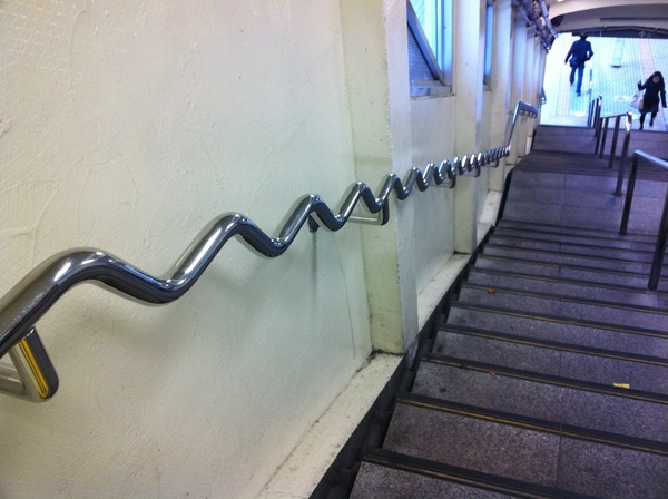 JR お茶の水の駅で「ジグザグな手すり」を見かけました。こんな作りの手すりを見たことがなかったので、手すり周りを観察していると、その近くにジグザグ手すりの説明が書いてありました。その説明を読んでみると、階段を降りるときは手すりでしっかり体を支えることができ、登るときは手すりを握って引っ張りやすいという、ナルホド!人に優しいデザインです。
