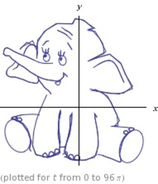さらに、フーリエ変換された(周期関数である)パラメータを3角関数の低次の項だけで表せば(高次の3角関数を省略すれば)、高周波数成分が消えて、滑らかで丸っこい曲線になります。つまり、手書きした感じの図形になるのです(式も短くなりますしね)。それが、結局のところ、Wolfram Alphaが作り出す「さまざまな曲線」になります。実際、「表示されている曲線を示す関数リスト」を眺めてみると、3角関数で表されていることがわかります。