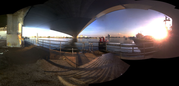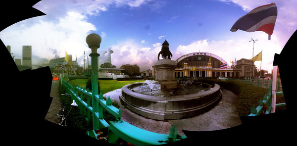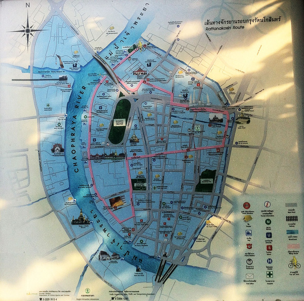 というわけで、今日見た「ケーニヒスベルクの橋渡り問題」は、バンコクのカオサン近く、チャオプラヤ川岸にある「プラ・スメン砦"Pom Pra Sumen"という名のほぼ公園」で見かけた「一筆書き問題」です。