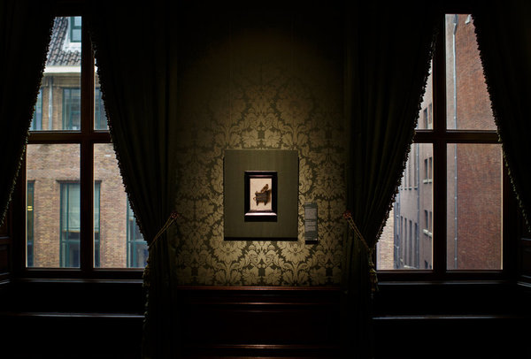 フェルメールの絵が飾られている隣の部屋、Steen Roomには、外から光が差し込む2枚の窓の間で「小鳥」が一羽たたずんでいる。この小品を描いたカレル・ファブリティウスはデルフトの爆発事故で若くして亡くなった画家だ。