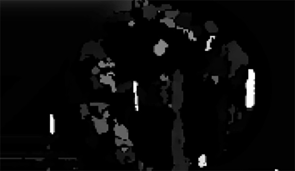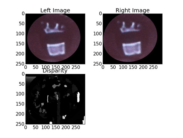 そこで、三原じゅん子さんの左右両目の瞳表面に反射して見える魚眼世界を、適当に歪み補正した上で、両眼視差から距離マップを復元しよう!としてみたのが下図に示す結果です。…残念ながら、今回は「それっぽい」世界を得ることができませんでした。
