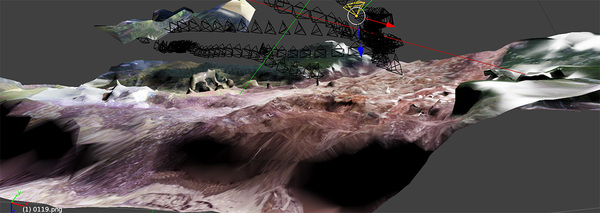 福岡県西方沖地震の後に、国土地理院がドローンヘリで撮影した動画を元にした3D地形図が公開されている。撮影動画自体もYoutubeで公開されているので、その動画を使って(自分でも)撮影されている風景の3次元形状復元をしてみた。たとえば、下のレンダリング画像は、得られた3次元メッシュを(モデラ・レンダラの)Blenderでレンダリングしてみたものだ。