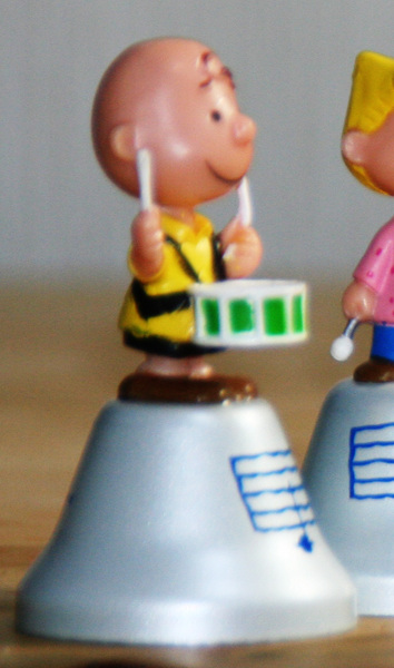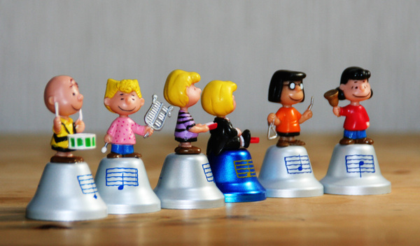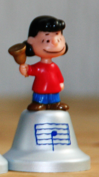 下の写真は、ペットボトルのコーラに付いていた食玩のハンド・ベルだ。スヌーピーのキャラクタが付いた「ハンド・ベル」、いや実際には手で持つというより指でつまむくらいの大きさなので、「フィンガー・ベル」とでも言うべきこのベルは、それでも一つ一つきちんと違う音階を奏でる。
