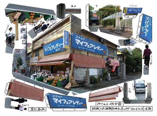 そこで、「非ユークリッド写真連盟」「非人称芸術連盟」「糸崎公朗・益田隆・井原清人」…つまりは、彼らの「フォトモ」を、まずは、組み立てて遊んでみることにした。フォトモは街中で撮影した被写体を組み合わせて、ジオラマを作る。色々な風景がフォトモとして記録されているけれど(作例)、実際に印刷できるサイズの型紙をOLYMPUSのサイトからはダウンロードすることができる。これなら、カラープリンタで型紙を印刷して、ハサミとノリを使って組み立てるだけで、ジオラマの「小さいけれど広大に感じられる世界」を自分の手で作り上げることができる。